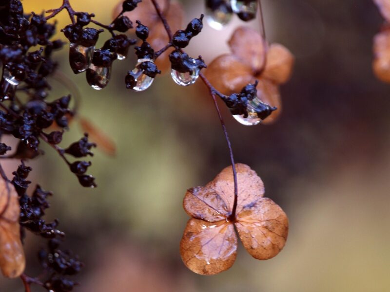 Auch ein Garten im Herbst hat seine schönen Seiten. Sind es nicht mehr die Blüten, so gibt es nun dicke Beeren bunte Blätter und viele verblühte Blütenstände die als schönes Gebilde in die Luft ragen. Es richt feucht, nach Moos, nach Erde…